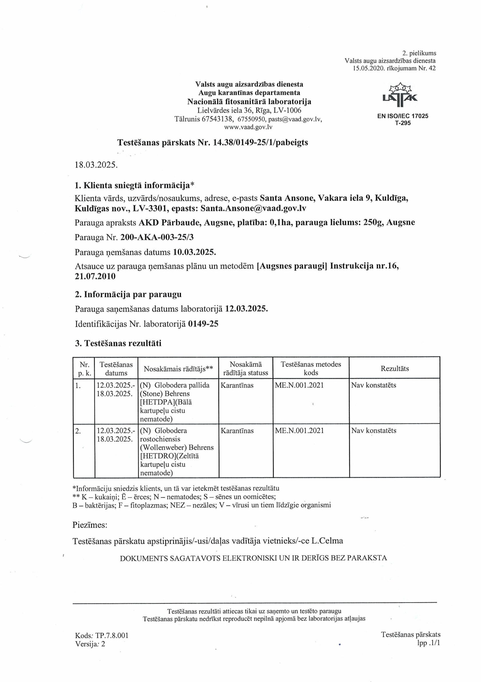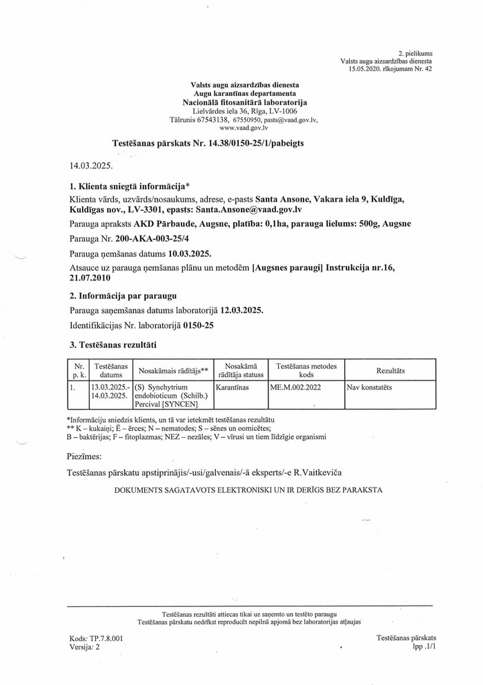 Mēs regulāri pārbaudām augsnes stāvokli, kurā tiek audzēti mūsu stādi. Jaunākās analīzes ir pievienotas zemāk kā oficiāls ziņojums. Jūs varat pieprasīt dokumentu kopijas, nosūtot mums ziņojumu, izmantojot tīmekļa vietnē esošo veidlapu.